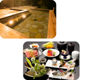 「ひめしゃがの湯」の食事処や宿の食事で食べる温泉を楽しんで、身体の中からも吸収!