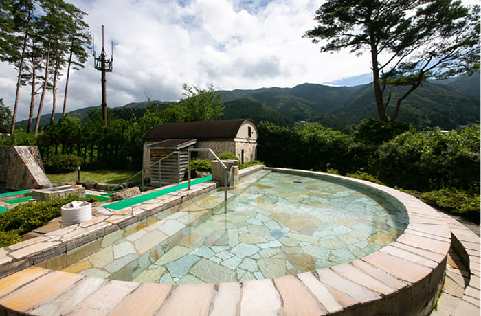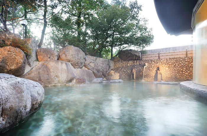 「ひめしゃがの湯」では、温かい湯と冷たい湯に交互に入ってみて。身体がじんわり温まる